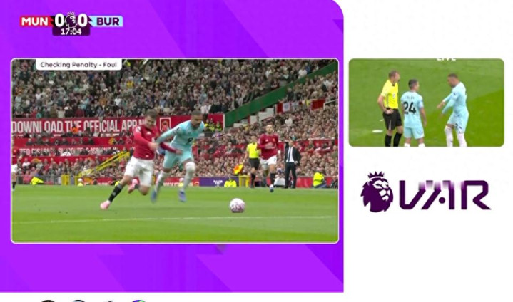 在2025-26赛季英超第3轮,曼联主场对阵伯恩利。在沃克拉倒芒特之后,主裁判做出争议判罚,回看慢镜头之后取消点球。
